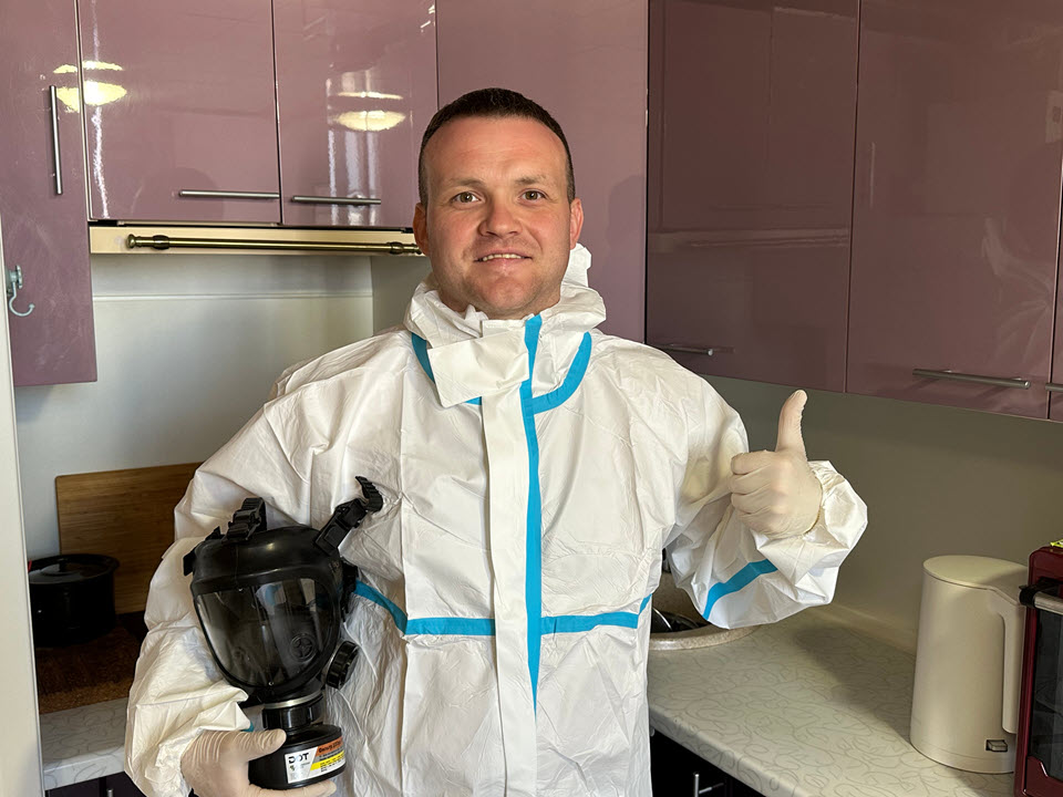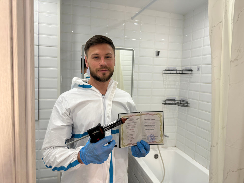 Специалисты работают в защитной экипировке, соблюдая все нормы безопасности. После обработки предоставляются рекомендации по безопасному использованию помещения.